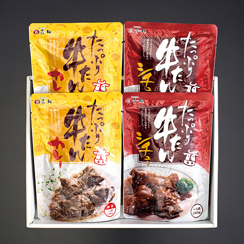 じっくり煮込んだ牛たんと濃厚で風味豊かな味わいのシチューと、牛たんと野菜の旨味とスパイス香る豊かな味わいのカレーの人気の詰合せです。