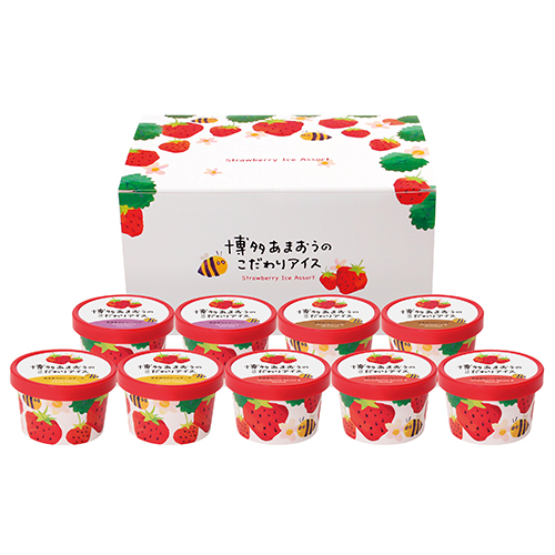 内容:あまおうソース&バニラ58ml×3、あまおう&ショコラ76ml×2、あまおうクリームチーズ・あまおうシャーベット各78ml×各2(計9)