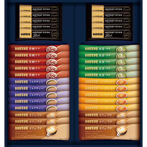 内容:カフェラテ14g×6、ブラックコーヒー2g×10、ハニーカフェ・オ・レ14g・黒糖ラテ15g・ミルクティー15g・抹茶・ラテ11g×各5