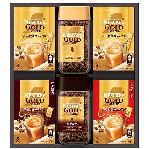 内容:ゴールドブレンド・ゴールドブレンドコク深め各80g、ゴールドブレンドスティック(7g×8)×2、ゴールドブレンドコク深スティック(7g×8)、ゴールドブレンドカフェインレススティック(7g×7)