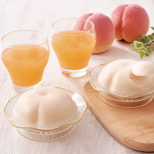 白桃のまろやかな甘さとなめらかな食感のぷりんと青森県産にこだわった桃ジュースの詰合せです。