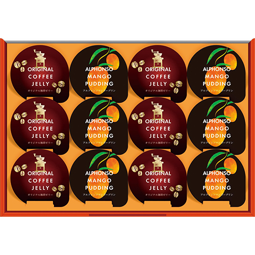 内容:オリジナル珈琲ゼリー・アルフォンソマンゴープリン各52g×6