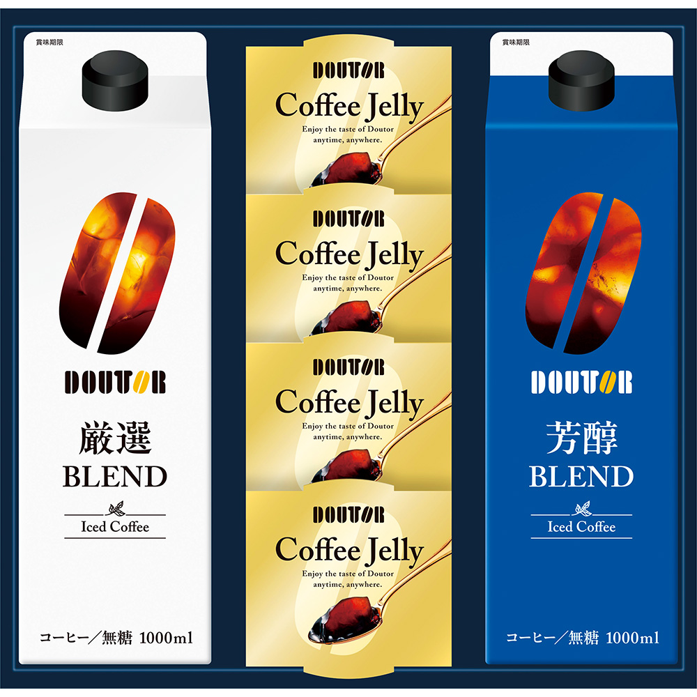 内容:アイスコーヒー無糖(厳選ブレンド・芳醇ブレンド)各1L、コーヒーゼリー70g×4
