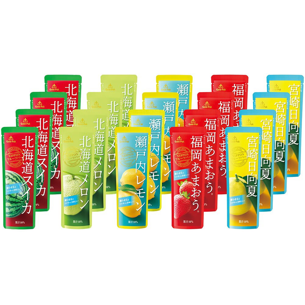 内容:北海道スイカ・北海道メロン・瀬戸内レモン・福岡あまおう・宮崎日向夏各80g×各4