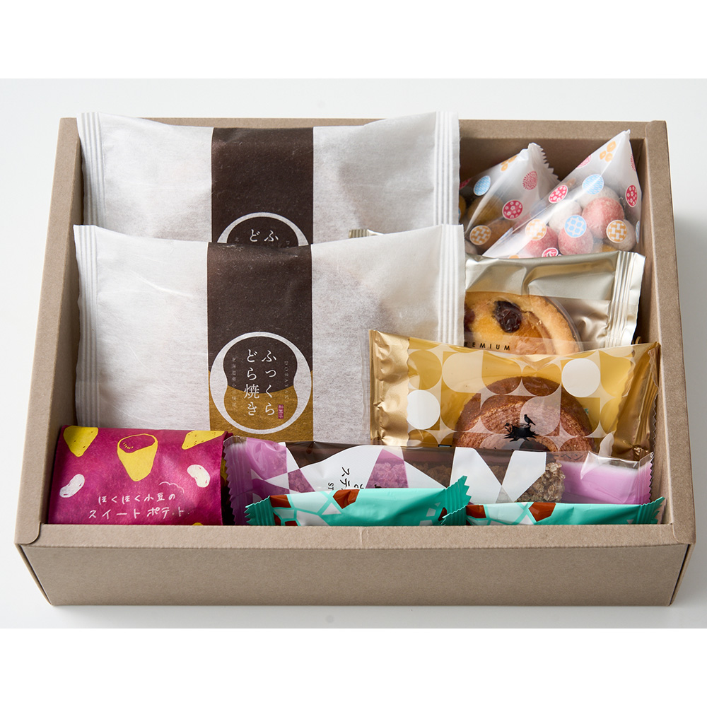 ◆内容/ふっくらどら焼き×2個、ほくほく小豆のスイートポテト×1個、フルーツタルト×1個、焼きショコラ×2個、五色豆×2個、さくさくスティックパイ(ショコラ)×1個、しっとりバームクーヘン(苺)×1個、花一輪挿しカード付(造花)