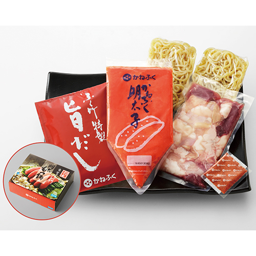 かねふく直営の築地ふく竹で人気メニューの明太もつ鍋を味わうことが出来る鍋セットです。