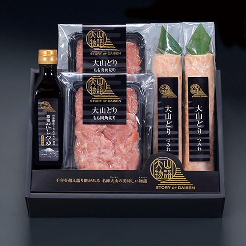 内容:大山どりもも角切り・大山どりつみれ各200g×各2、濃縮だしつゆ(5倍濃縮)200ml