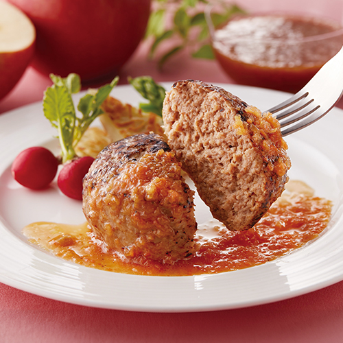 国産肉を使用したハンバーグをふっくらと焼き上げました。湯煎で温めるだけの簡単調理です。