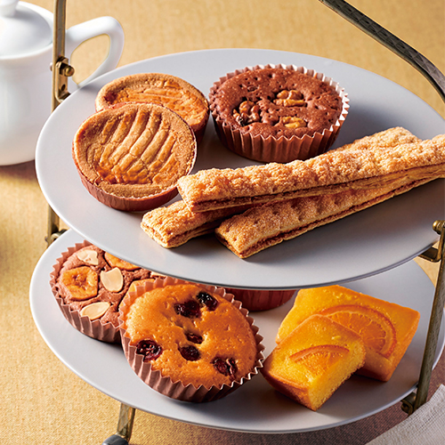 プチケーキやオレンジケーキ、ロングパイ、厚焼きクッキーと、ホテルの豊かなティータイムを演出するスイーツを詰め合わせました。