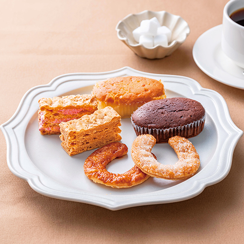 内容:馬蹄パイ(キャラメル・シュガーバター)・ミルフイユ(フランボワーズ)×各3、ミルフイユ(キャラメルラテ)・スフレ(芳醇フロマージュ・濃厚ショコラ)×各2