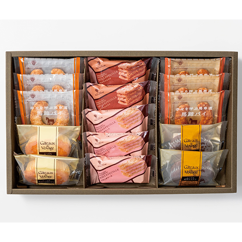 ミルフイユ、スフレ、U字型の馬蹄形をモチーフに作られた馬蹄パイの詰合せです。