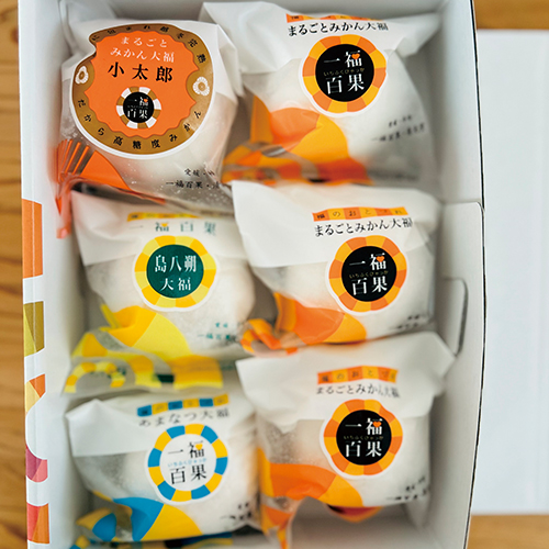 内容:まるごとみかん大福90g×3、甘夏大福・島はっさく大福各80g、まるごとみかん大福「小太郎」100g