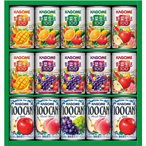 野菜&フルーツのおいしさが人気の「野菜生活100」と「KAGOME100CAN」の詰合せです。