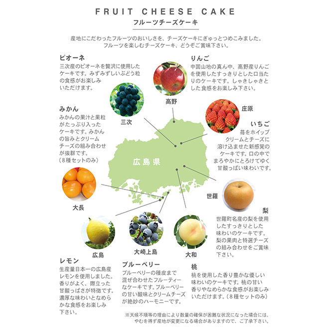 広島県産フルーツチーズケーキ8種セット