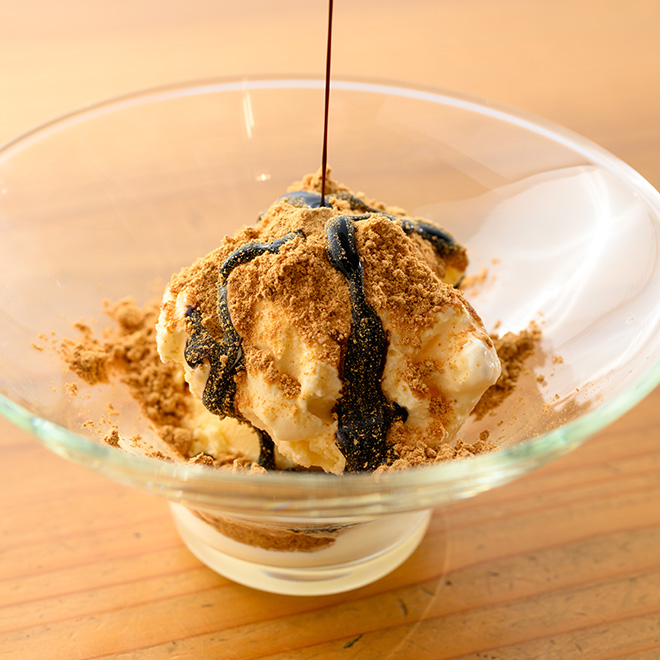 国産の丸大豆を薪の火でじっくりと炒って作りました。濃い色、香ばしい香、濃厚な味が特徴のきなこです。