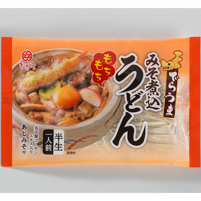 もちもちとした食感が自慢の半生めんを名古屋コーチン鶏ガラエキス入りの味みそで煮込む“みそ煮込うどん”です。